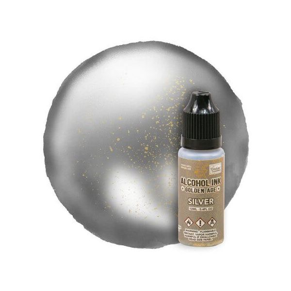 This delightful Couture Creations Golden Age Alcohol Ink colour features a pearl silver pigment dusted in golden flakes perfect for mixed media projects all year round. 12ml 0.4fl oz.