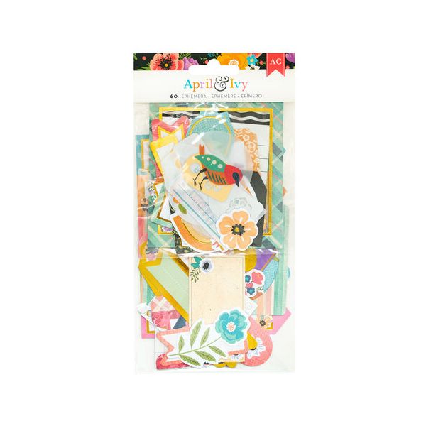 Introducing April and Ivy by American Crafts - a paper collection that effortlessly combines vintage allure, eclectic flair, and vibrant energy. Explore a tapestry of florals, stripes, plaid, and more fun patterns that come together to create a harmonious blend for your next project! Add some awesome ephemera pieces to scrapbooks, cards, journals, and more for extra color and style. These journaling ephemera pieces include Die-Cut and an iridescent foil accents to make your projects pop. This package includes 60 ephemera pieces in a variety of colors and designs. Layer: use pieces as-is or layer them for some dimension and texture.