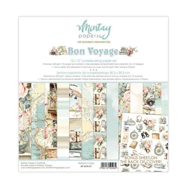 Bon Voyage 12x12 Inch Scrapbooking Paper Set - MINTAY