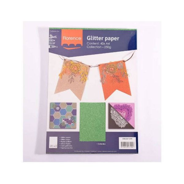 Con i fogli di cartoncino glitterati Florence, puoi aggiungere facilmente dei bei dettagli glitterati ai tuoi progetti artigianali. Crea biglietti di Natale scintillanti, biglietti di compleanno abbaglianti e inviti glamour. Decora un planner o una pagina di scrapbook con abbellimenti glitter fustellati o crea graziose decorazioni per le feste e la tua casa.