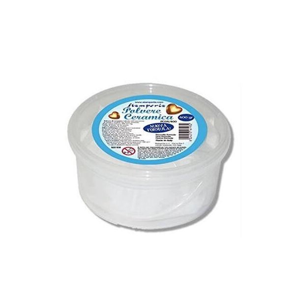Ceramic Powder Extra Light 400gr. Suitable for artistic models and moulds. Water/ powder ratio: 800ml:1kg. Hardening time: 20-40 minutes, or more in case of addition of essences.