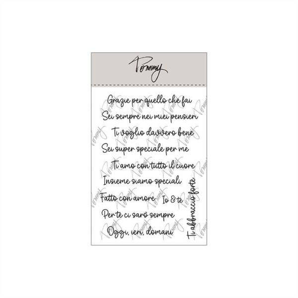 Clear acrylic stamp, high quality polymer manufacturing. Lift the stamp from its acetate sheet, adhere it to the acrylic block, ink it and stamp your image on the desired surface. Clean with soap and water or specific stamp cleaner. Some permanent inks may stain the polymer of the stamp, but this will not in any case effect the stamp performance.