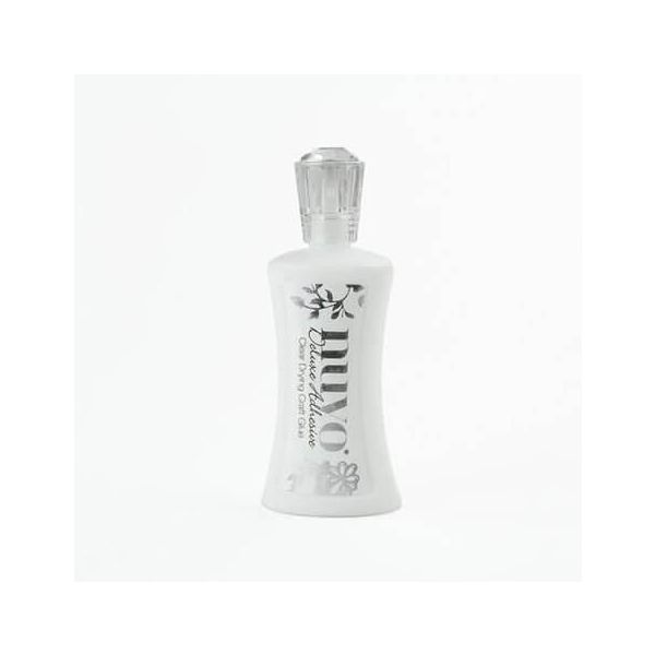 La Nuvo Deluxe Adhesive di Tonic Studios è una colla a base di acqua. Questa colla vinilica (PVA) - nota anche come colla per legno o colla per scuola - è morbida e bianca, ma quando si asciuga diventa trasparente. Può essere utilizzata su vari materiali, tra cui carta, cartone, gomma crepla, fogli di acetato e MDF. Quando si usa su carta e cartone leffetto piegato è minimo, pertanto può essere utilizzata per finiture professionali.
