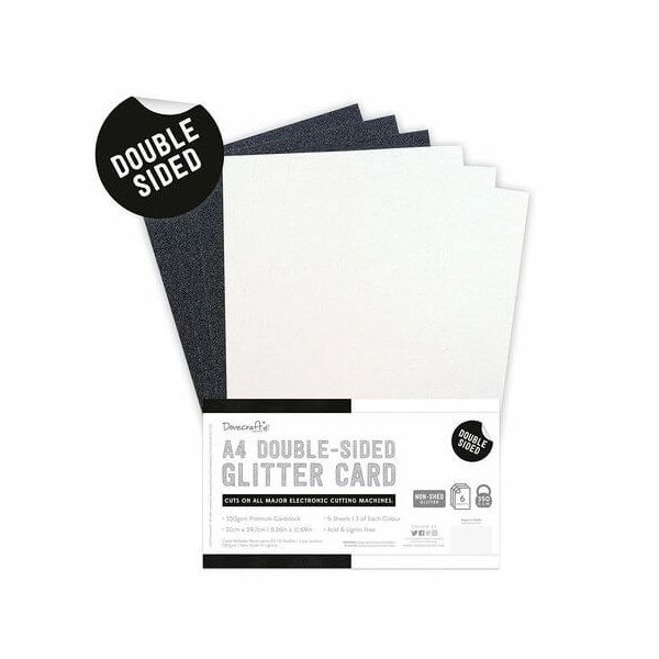 Cartone glitter Dovecraft con una serie di proprietà speciali. Questo cartoncino pesante da 350 grammi contiene glitter su entrambi i lati. Tuttavia, questi sono NON-SHED. I singoli glitter quindi non cadono durante la lavorazione. Quindi puoi lavorare in modo pulito! Inoltre, questo cartone è stato sviluppato appositamente per l'uso in combinazione con fustellatrici sia manuali che a macchina. Dimensioni: 21x29,7 cm. Contenuto: 6 fogli!