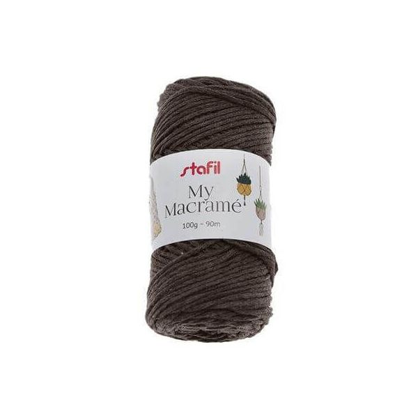 Filato My Macramè antracite 100gr-90m -Stafil 70% cotone riciclato 30% poliestere Il macramé è una tecnica di annodatura originaria dallOriente che sta diventando sempre più popolare anche da noi. In un batter docchio, si possono creare opere darte tessute come decorazioni murali, gioielli o altri oggetti. Trattandosi di materiale in gran parte riciclato è possibile riscontrare una leggera variazione di tonalità del colore da una fornitura allaltra.