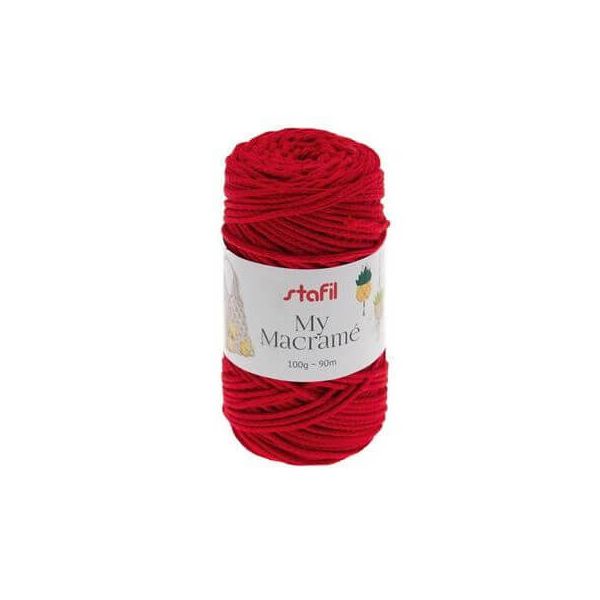 Filato My Macramè rosso 100gr-90m -Stafil 70% cotone riciclato 30% poliestere Il macramé è una tecnica di annodatura originaria dallOriente che sta diventando sempre più popolare anche da noi. In un batter docchio, si possono creare opere darte tessute come decorazioni murali, gioielli o altri oggetti. Trattandosi di materiale in gran parte riciclato è possibile riscontrare una leggera variazione di tonalità del colore da una fornitura allaltra.