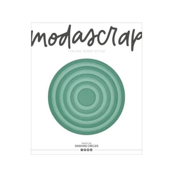 La fustella Dashing Circles ti permette di creare e decorare tutto ciò che vuoi; biglietti, album, inviti, card e molto altro. Con la puntura molto originale, divertiti a realizzare bellissime ScrapArt con un prodotto unico dal design esclusivo Italiano. Le fustelle metalliche ModaScrap sono compatibili con tutte le macchine da taglio in commercio e permettono di fustellare carta, cartoncino e gomma crepla. Dettagli: Misure: Cerchio1: 13.5 cm - Cerchio2: 12 cm - Cerchio3: 10.7 cm - Cerchio4: 9.5 cm - Cerchio5: 8.3 cm - Cerchio6: 7 cm - Cerchio7: 6.7 cm - Cerchio8: 4.4 cm - Cerchio9: 3.2 cm Quantità: 9 fustelle