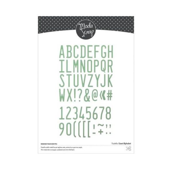 Giant Alphabet è un alfabeto di grandi dimensioni che ti permette di avere tante lettere e numeri con due semplici fustellate! Divertiti a realizzare tutte le frasi, parole o sentiments con questo simpatico alfabeto, prodotto unico dal design esclusivo Italiano. Le fustelle metalliche ModaScrap sono compatibili con tutte le macchine da taglio in commercio e permettono di fustellare carta, cartoncino e gomma crepla. Dettagli: Misure: altezza della lettera circa 3 cm Quantità: 2 fustelle