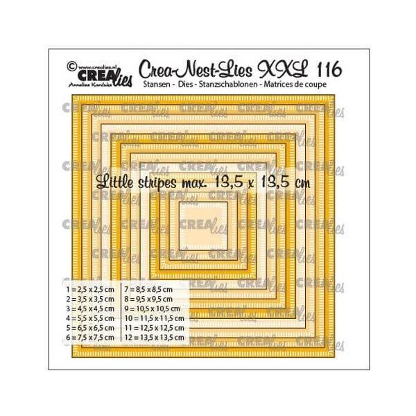 This set consists of 12 dies:1 = 2,5 x 2,5 cm2 = 3,5 x 3,5 cm3 = 4,5 x 4,5 cm4 = 5,5 x 5,5 cm5 = 6,5 x 6,5 cm6 = 7,5 x 7,5 cm7 = 8,5 x 8,5 cm8 = 9,5 x 9,5 cm9 = 10,5 10,5 cm10 = 11,5 x 11,5 cm11 = 12,5 x 12,5 cm12 = 13,5 x 13,5 cm