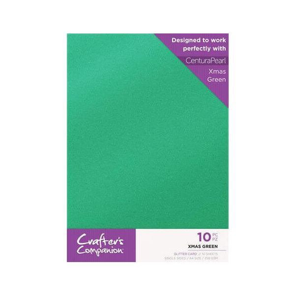 Glitter Card A4 Pack Xmas Green (10pcs) - CRAFTERS COMPANION