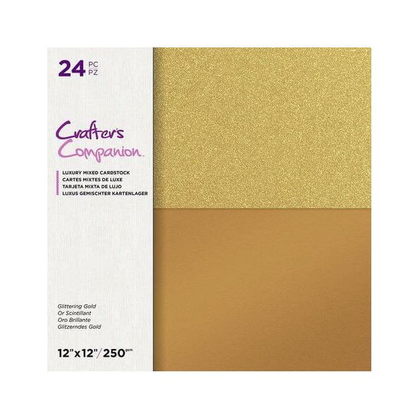 Give your craft projects an opulent and luxe look with the Glitter and Pearlescent Card Pads from Crafters Companion! Each pad in this range will give you the Midas touch, with premium glitter and pearlescent cardstock in perfectly co-ordinating metallic shades. The Glittering Gold pad includes 24 sheets in a stunning warm golden shade - perfect for making any special occasion extra special! With 12 sheets of glitter card and 12 sheets of pearlescent card , whether you want to go glam with some serious sparkle or add a touch of elegant pearlescent shimmer, theres a treasure trove of creative opportunity at your fingertips! These versatile pads are sized at 12x12 inch to accommodate your larger creations and are 250gsm so theyre sturdy enough to construct stand alone items and decorative items!