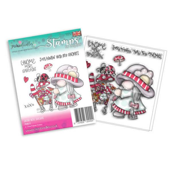 This super cute Gnome is just hanging with her gnomies and going shopping! Featuring a shopping cart packed with toadstools and a cute ladybug, this adorable stamp set comes complete with fun sentiments to really add a pop to all your crafting and card making projects. Everyone will love receiving a card with this gorgeous Stamp!
