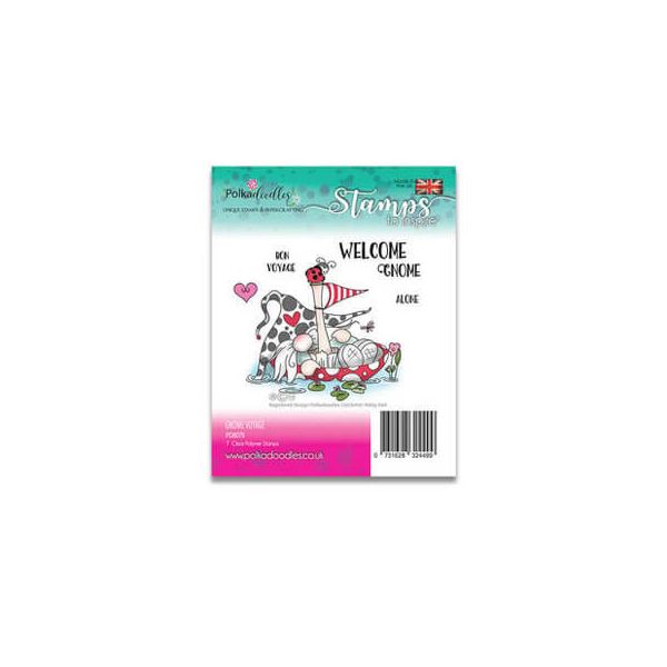 A super cute set of Gnome themed clear polymer stamps perfect for all year round! These fun designs each come with their own sentiments/accessory stamps and are easy to color with markers or pencils. 4x6 polymer stamp set with 7 clear stamps. Gnome is approx. 3.75 x 3.5 inches.