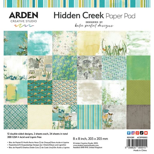 Transform your creative projects with the Hidden Creek Collection by Katie Pertiet. This stunning 12x12 inch paper pad features 24 unique designs (12 double-sided) that blend shabby chic aesthetics with vintage charm, making it perfect for any scrapbooker, cardmaker, or journaler. Crafted from premium 200gsm paper, each sheet is acid-free and lignin-free, ensuring the durability and longevity of your artistic creations. The collection is adorned with a delightful array of motifs, including intricate florals, enchanting butterflies, and charming patterns that evoke a sense of whimsy and nostalgia. With 2 sheets of each design, the Hidden Creek Collection offers limitless possibilities for your crafting endeavors. Let this beautiful paper pad inspire your imagination and add a touch of elegance and creativity to your scrapbook pages, cards, and journals.