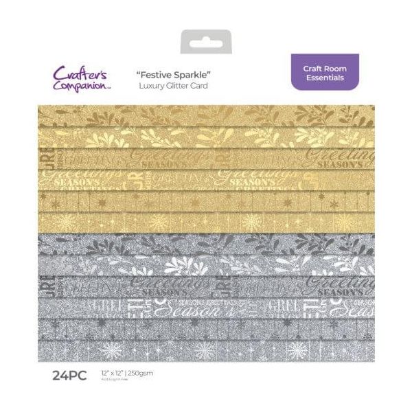 Give every Christmas craft a touch of sparkle with the Luxury Glitter Card Pad 12 x 12 Festive Sparkle pack from Crafters Companion. Choose from a range of elegantly festive patterns and high-shine effects to give every papercraft project a truly beautiful finish. With 24 sheets included theres something for every seasonal style! Sparkling seasonal makes - The Crafters Companion 12 x 12 Luxury Glitter Card - Festive Sparkle pack includes a premium palette of glimmering card effects. This gold and silver glitter card is packed with beautiful sparkle. And you can choose from high-shine mirror foiled patterns or more subtle matt mirror foiled patterns! A style for every make - There are three festive patterns included, twinkling stars, festive foliage and Christmas sentiments. Each pattern is available in each of the foiled effects. Perfect for seasonal papercraft projects - Each sheet measures 12 x 12 and is 250gsm. So from die-cut details, borders and frames to gift boxes, bags and scrapbook pages - every Christmas craft will have a premium finish.