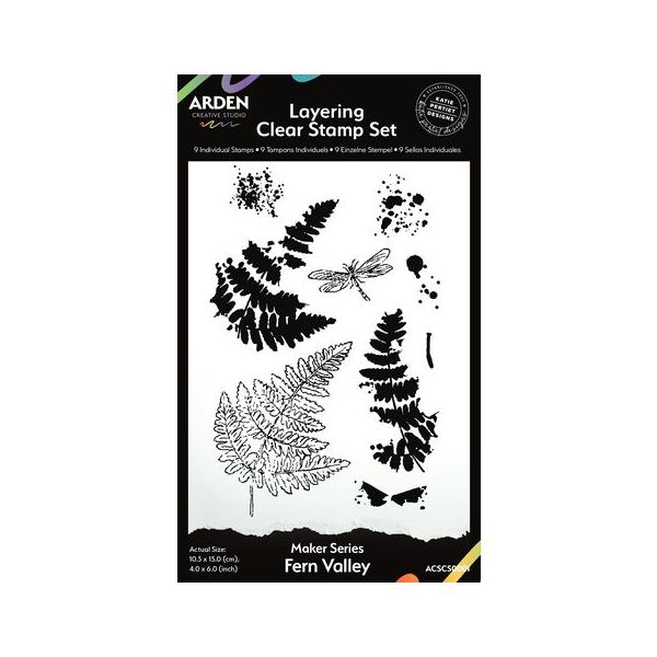 Unleash your creativity with the Hidden Green Sketchbook Layering Clear Stamp Set, an enchanting addition to your artistic toolkit from Arden Creative Studio. Designed by the talented Katie Pertiet, this set features three intricately layered stamps of ferns and a captivating dragonfly, each designed to create a stunning watercolour effect. Measuring 4 in x 6 in, this versatile stamp set is perfect for a wide range of creative endeavours-whether youre a scrapbooker, card maker, journaler, or mixed media artist. The beautifully detailed fern and dragonfly designs add a touch of natural elegance, while the useful splatters enhance your projects with a dynamic flair. Elevate your journaling, craft stunning backgrounds, or create eye-catching focal points that breathe life into your work. With the Hidden Green Sketchbook Layering Clear Stamp Set, you can effortlessly combine the tranquillity of nature with artistic exploration, making every project a unique masterpiece. Experience the beauty of layering and let your imagination take flight with these thoughtfully designed stamps by Katie Pertiet for Arden Creative Studio.