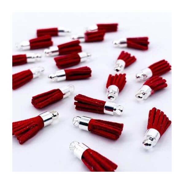 Le Mini Tassel Cherry sono un set di nappine in pelle scamosciata e metallo argento.