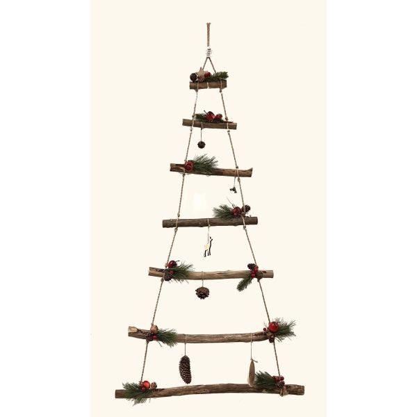 scala decorativa in legno con addobbi natalizi - ROSSO CREATIVO