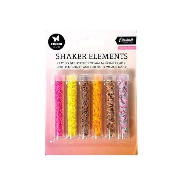 Essentials by Studio Light. Shaker Elements. Clay figures. Pack contains 6pcs. Perfect for making shaker cards. Different shapes and colors to mix and match.