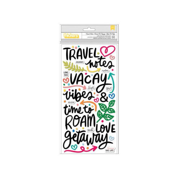 THICKERS - TRAVEL NOTES. Puffy phrase & accent stickers. Package size: 5.625 x 12.75 in. 160 pieces.