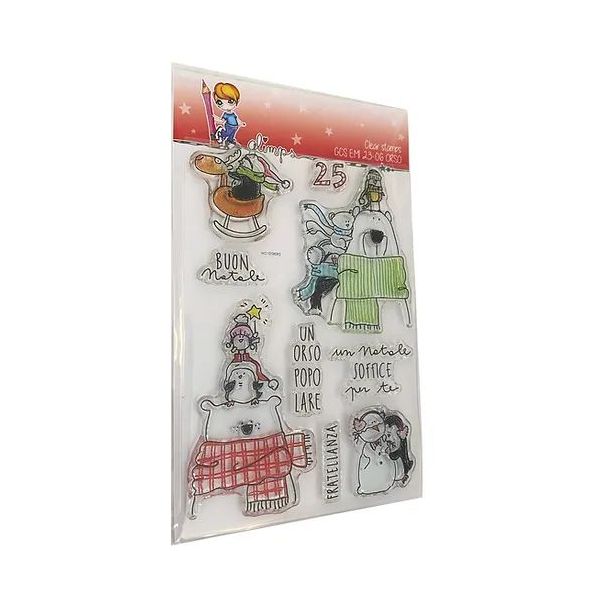 I set Clear Stamps Glimps sono realizzati con fotomolimero trasparente di alta qualità. Semplici da usare, basta rimuovere il timbro dal supporto trasparente e posizionarlo su un blocco di acrilico o un altra base liscia in plexiglass. Dim: A6 - 4''x 6'' Set composto da 9 timbri Realizzati in collaborazione con EMILIA DE VITO
